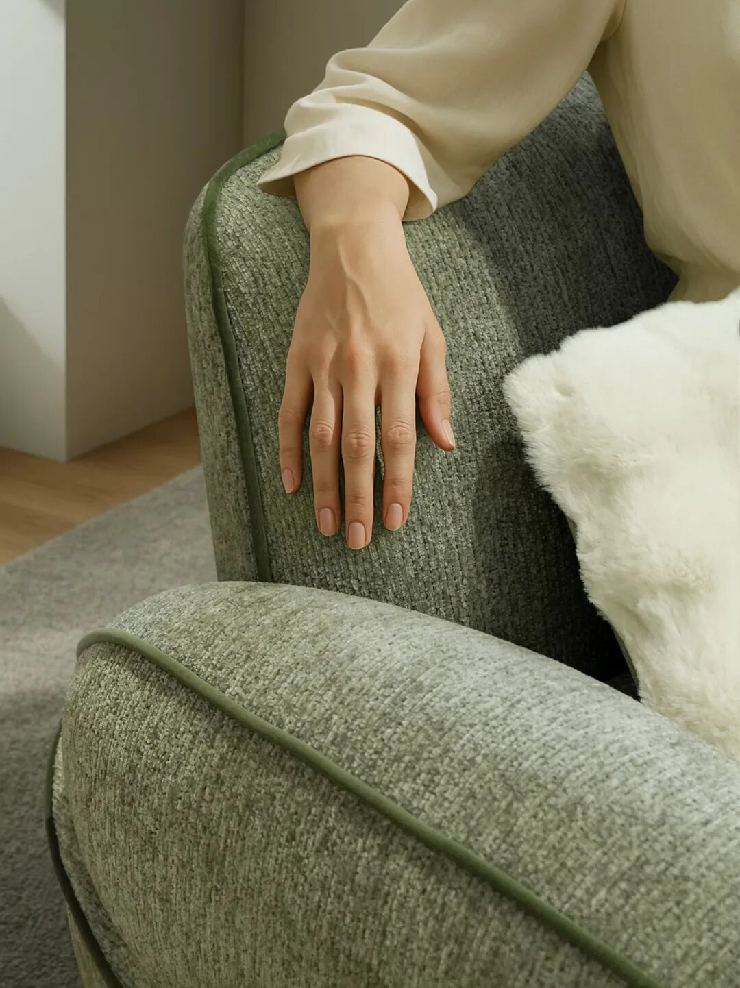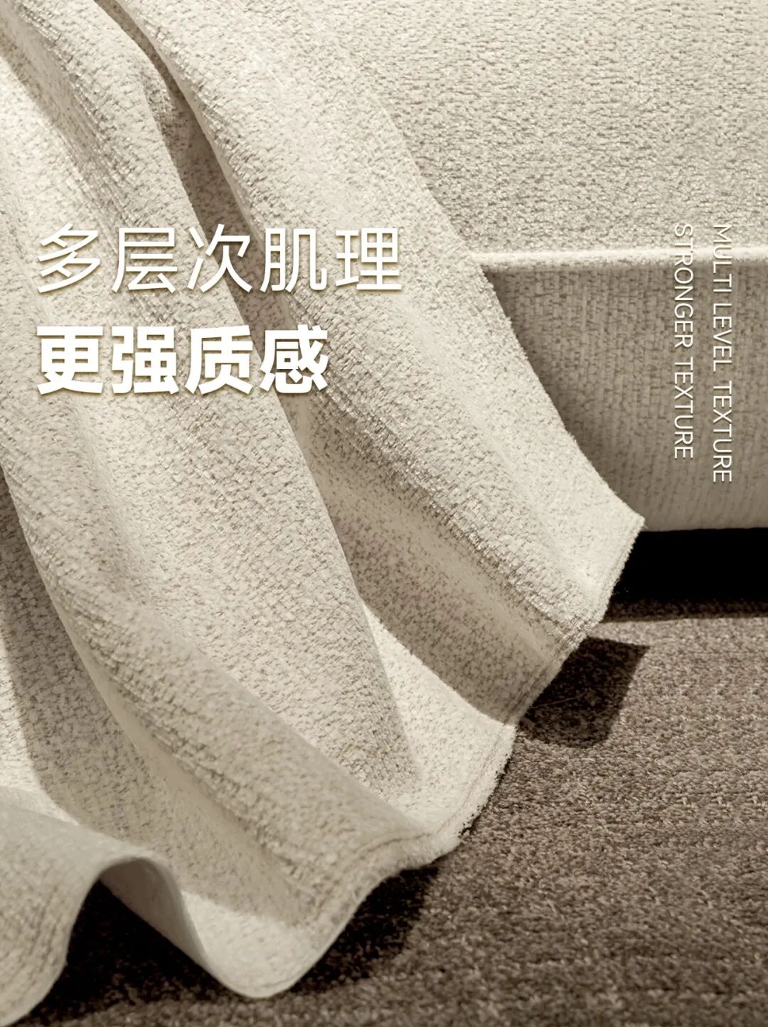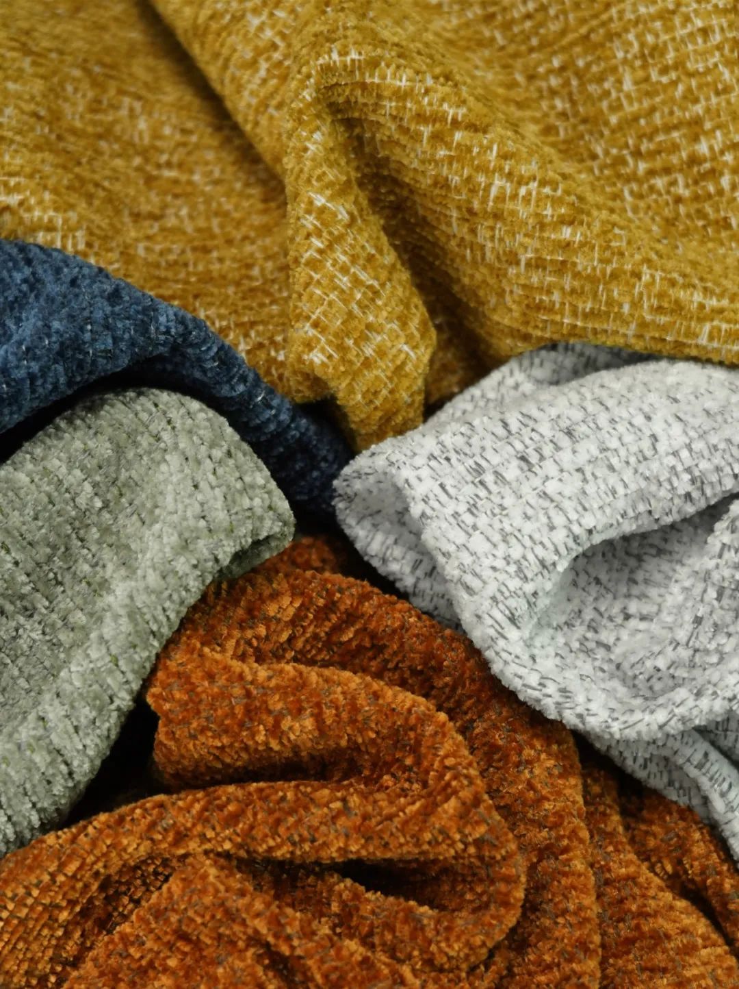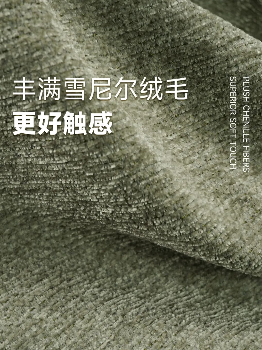 雪尼尔独有的绒感,一簇簇短小却错落有序的绒毛,手感柔软,舒适惬意。自然肌理感强,绒面更为丰满。