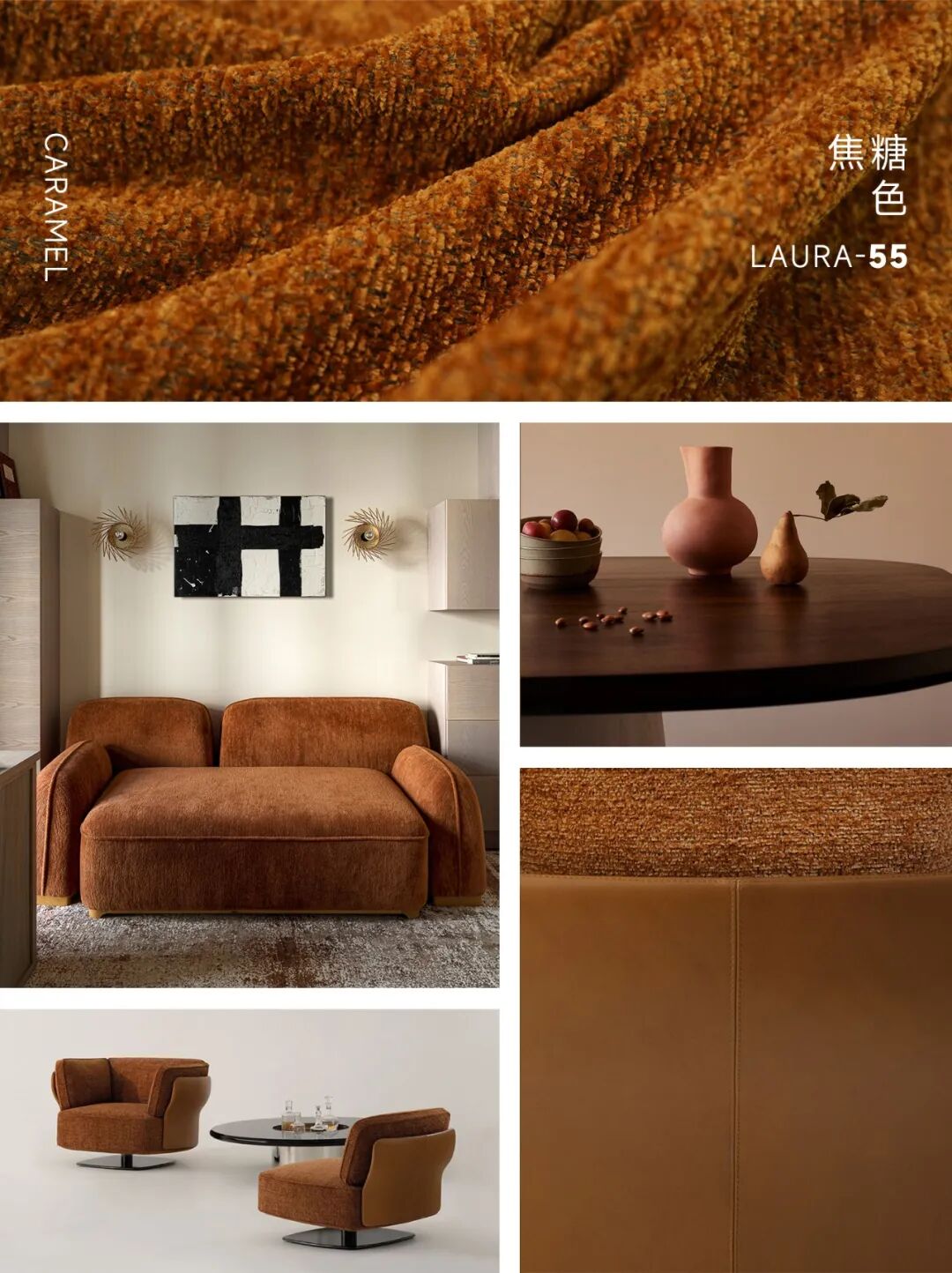 Selected low saturation earthy colors (white tea, apricot gray, cement gray) and Maillard colors (caramel, mocha, ginkgo yellow, moss green) are rich in color and versatile, with high cost-effectiveness.